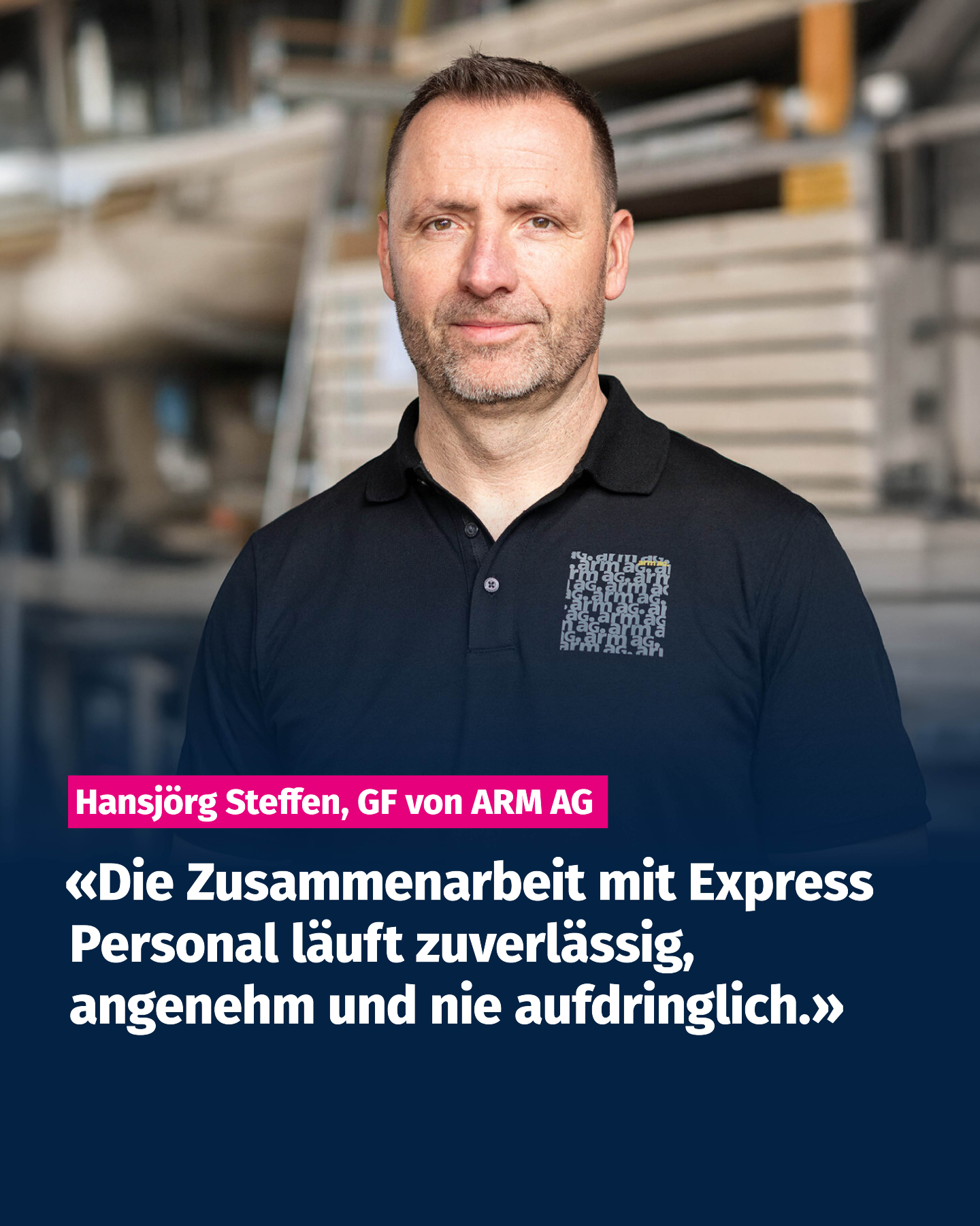 Kundenstimmen, die uns motivieren 💙 „Die Zusammenarbeit mit Express Personal läuft zuverlässig, angenehm und nie aufdringlich.“ — Hansjörg Steffen, Geschäftsführer ARM AG Danke für das Vertrauen und die partnerschaftliche Zusammenarbeit! @arm_ag_konolfingen #Kundenfeedback #ExpressPersonal