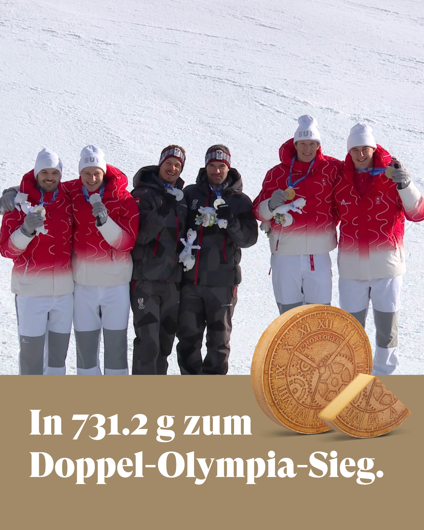 Sensationell! In 731,2 g L'Horloger zum Doppel-Olympia-Sieg. 🥇🥈 Was steckt dahinter? Ganz einfach: Mit unserem L'Horloger wird Zeit in Käse gemessen. Die beiden Olympia-Läufe ergeben zusammen 731,2 g – ein Doppel-Erfolg zum Geniessen. 🧀 Herzliche Gratulation an das gesamte Schweizer Team zu dieser überragenden Leistung!🇨🇭 --- Sensationnel! Un doublé olympique en 731,2 g de L'Horloger. 🥇🥈 Voilà la somme qu’on obtient en mesurant le temps en grammes avec notre fromage L’Horloger. Les temps cumulés de nos duos olympiques sont équivalents à 731,2 g – un doublé à savourer sans modération. 🧀 Nos plus chaleureuses félicitations à toute l’équipe suisse pour cette performance exceptionnelle!🇨🇭 #Horloger #SwissCheese #olympicchampion #swissski #spielhofersa #fromagesspielhofer